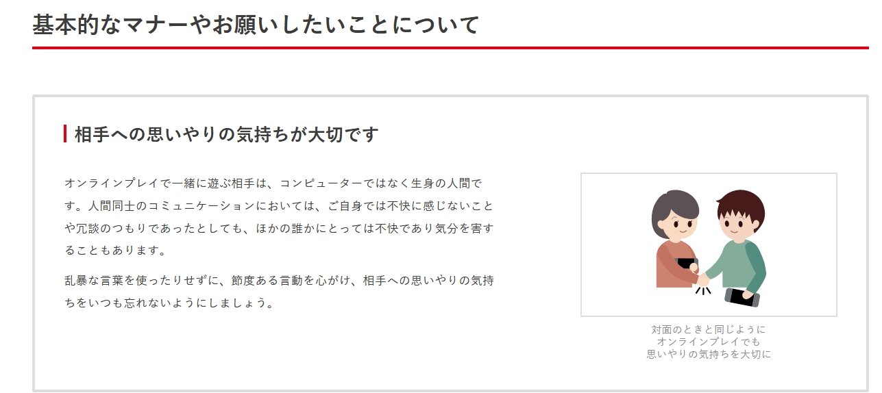 オンラインプレイで遊ぶときは、一緒に遊ぶ相手への思いやりの気持ちを忘れないようご協力をお願いいたします。