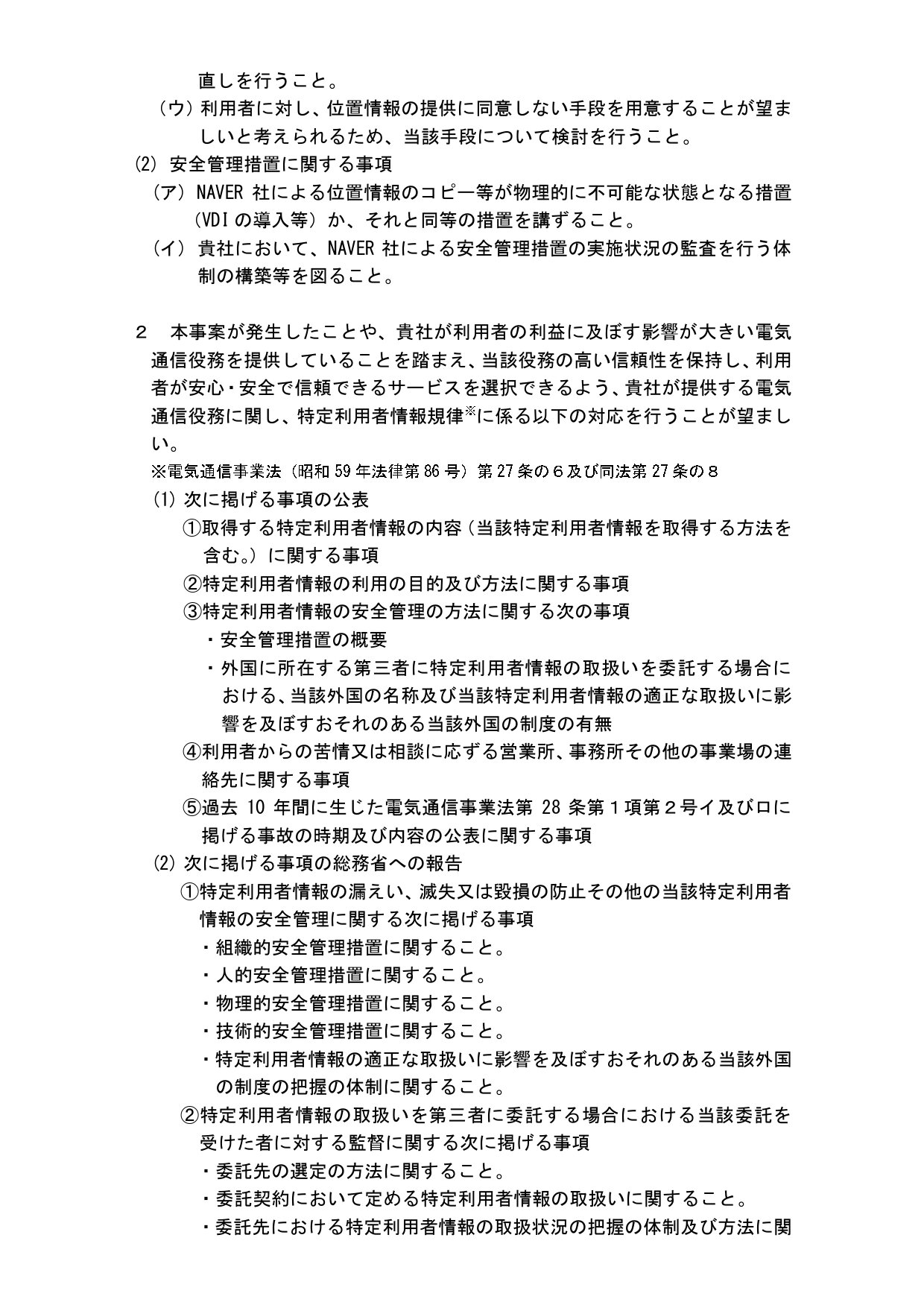 業務委託先であるNaver Corporationによる当社検索関連データへのアクセス許諾に関し、以下事項に関して指導を受けました。