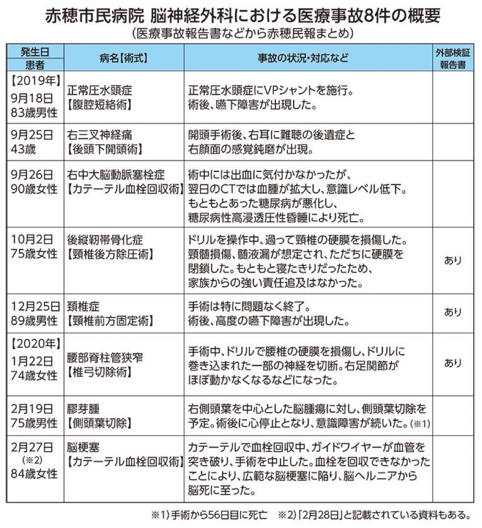 ・赤穂市民病院に在任中、複数の医療事故に関わったとされる脳神経外科の40代医師が、専門医試験の受験を妨害されたなどとして、上司だった科長と前院長、赤穂市を相手取り、損害賠償を求める民事訴訟を神戸地裁姫路支部に提起したことがわかった。