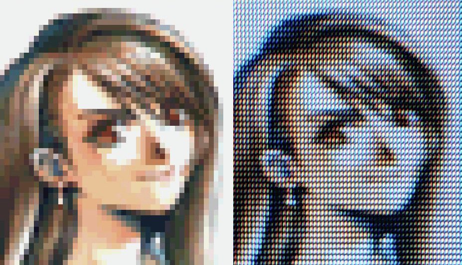荒い画像を解像度の高いモニターにそのままに表示させると、元の荒い画像にみえないのはあたりまえ