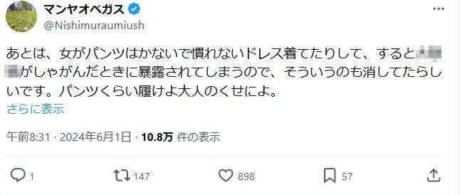 ちなみに、ジーンズの話は外国のインフルエンサーが「試着のときにも俺はノーパンだ」と言って炎上したことが過去にあったので知った
