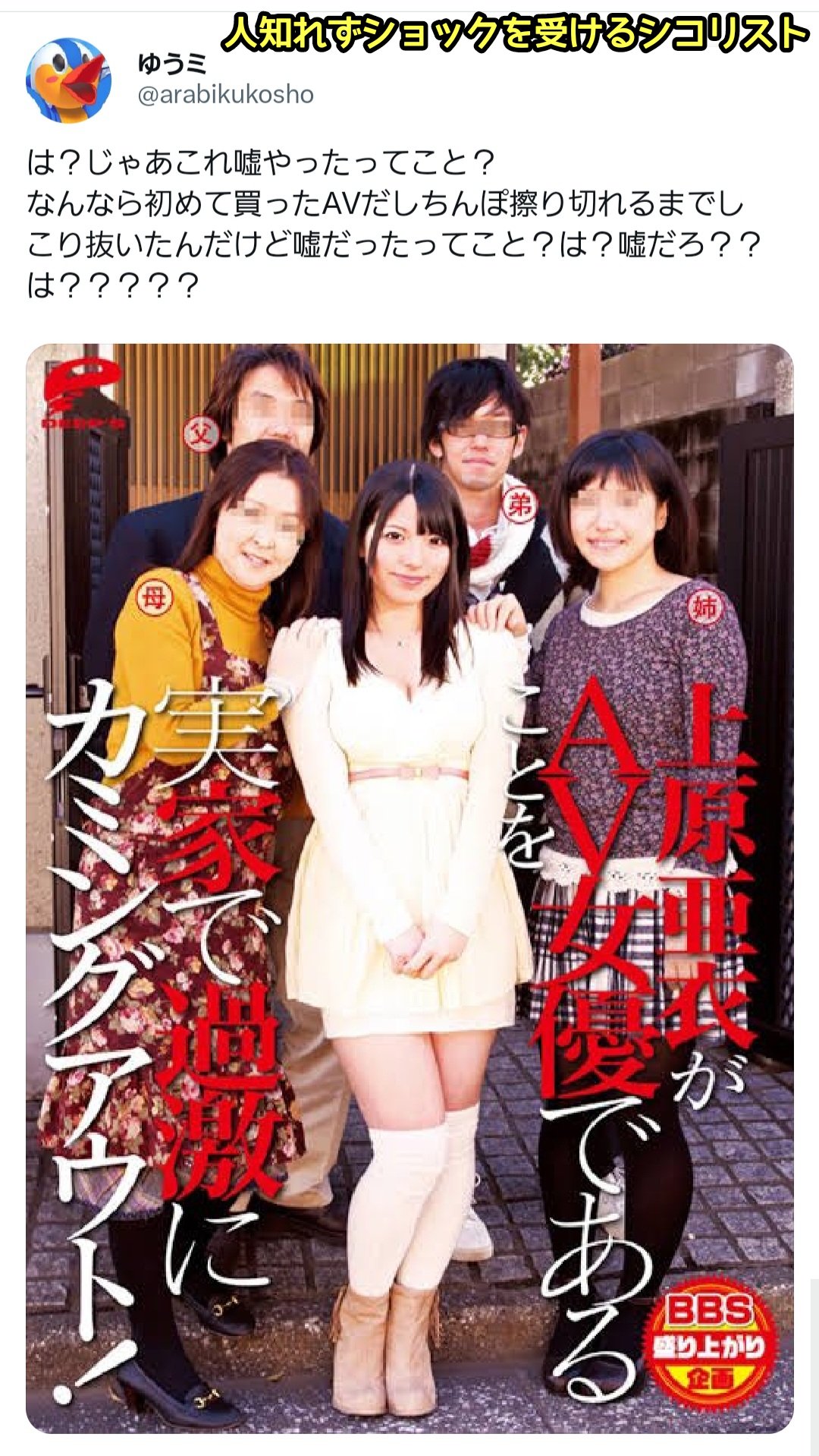 上原亜衣でシコり散らかした男性が、流れ弾で人知れず傷つく(今ここ)#本日の多様性#三上悠亜 #上原亜衣 pic.twitter.com/nBMCRQw4kg