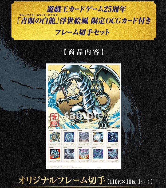 遊戯王カードゲーム25周年 「青眼の白龍」浮世絵風限定OCGカード付きフレーム切手セットの販売開始