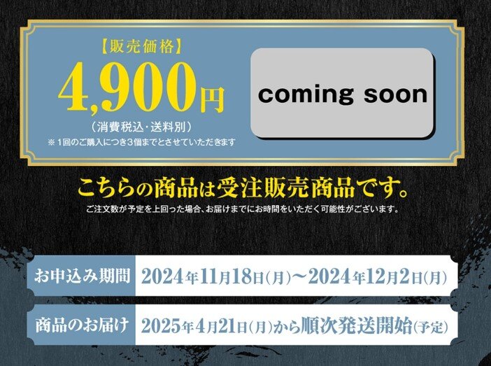 ※お申込み数が予定を上回った場合、お届けまでにお時間をいただく可能性がございます。
