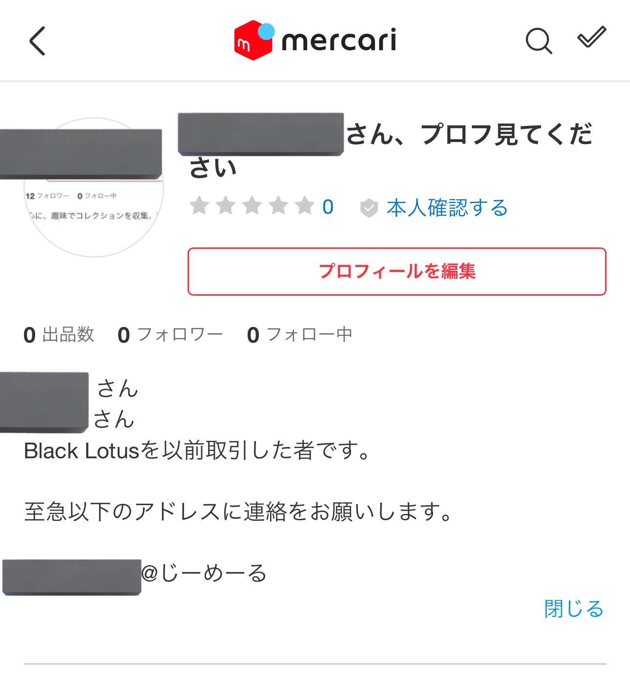 (MTGのブラックロータスをメルカリで取引していた模様)