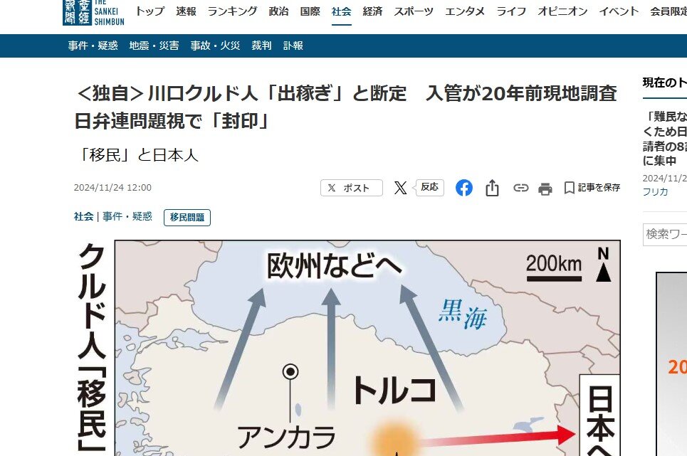 ・埼玉県川口市に集住するトルコの少数民族クルド人をめぐり、法務省入国管理局(現出入国在留管理庁)が20年前の平成16年、難民認定申請者の多いトルコ南部の複数の村を現地調査し「出稼ぎ」と断定する報告書をまとめていたことが24日わかった。