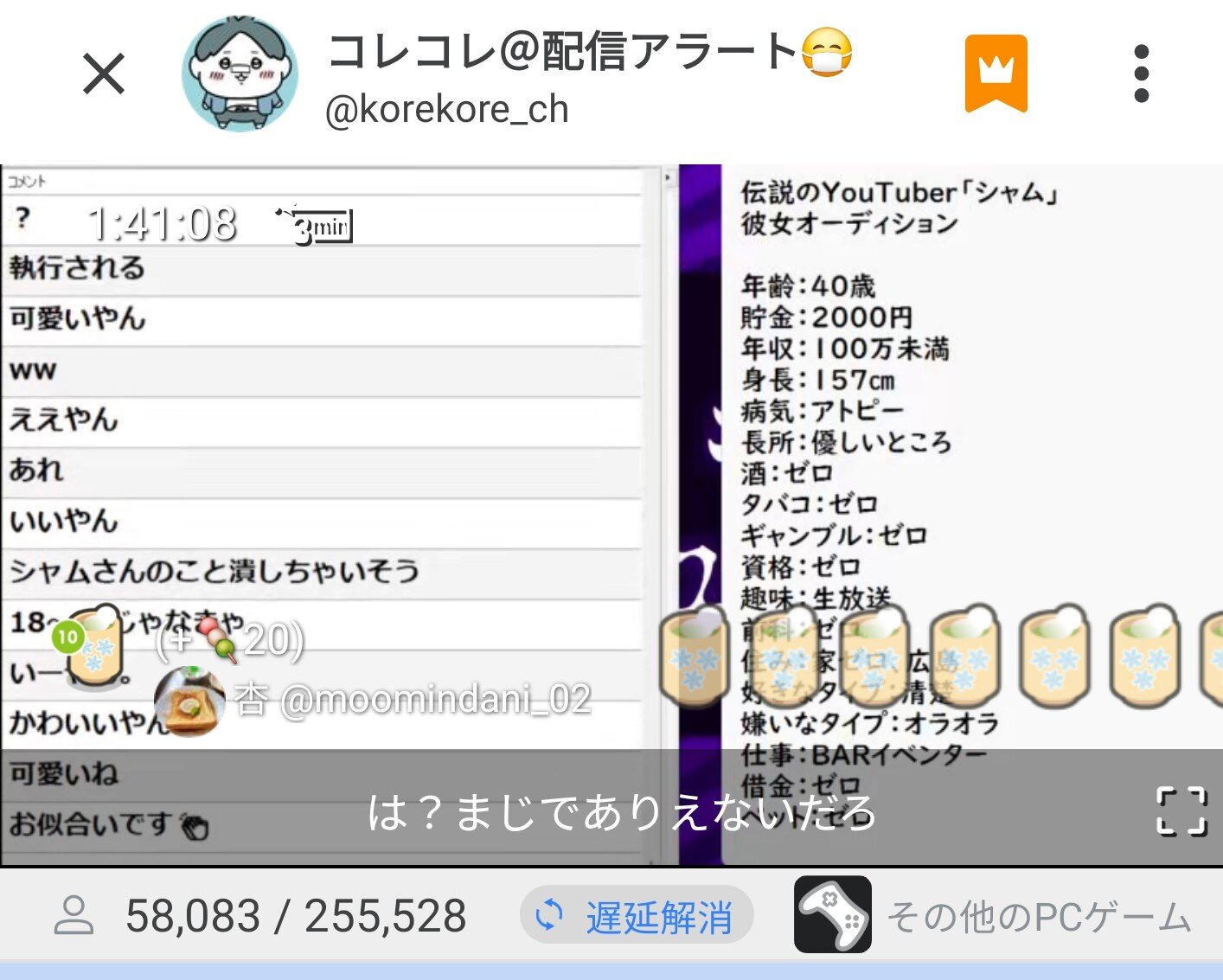 モテない漢の頂点を見た#コレコレ#シャムさん彼女オーディション pic.twitter.com/S6FOw9sqE8