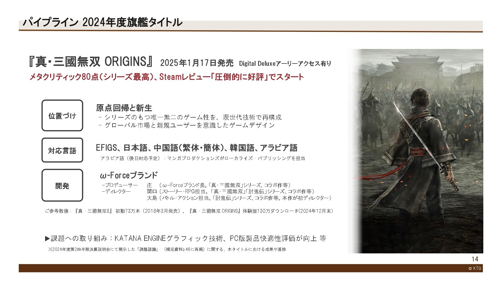 「ω-Force」ブランドでは、『真・三國無双 ORIGINS』(2025年1月17日発売)の体験版が130万ダウンロードを突破しました。