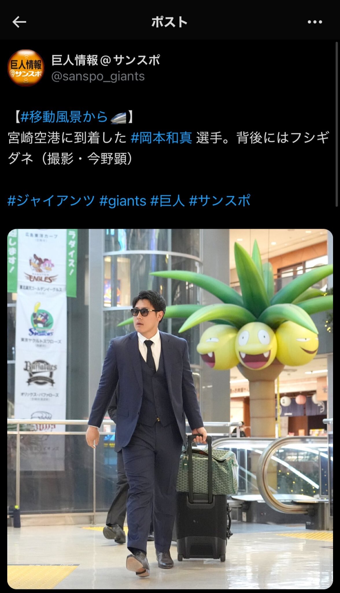 【#移動風景から🚄】 #岡本和真 選手の後ろに写っているのはナッシーでした🥲初代ポケモン世代なのに普通に間違えました…すみません#ジャイアンツ #giants #巨人 #サンスポ pic.twitter.com/yr2VqwKUzZ