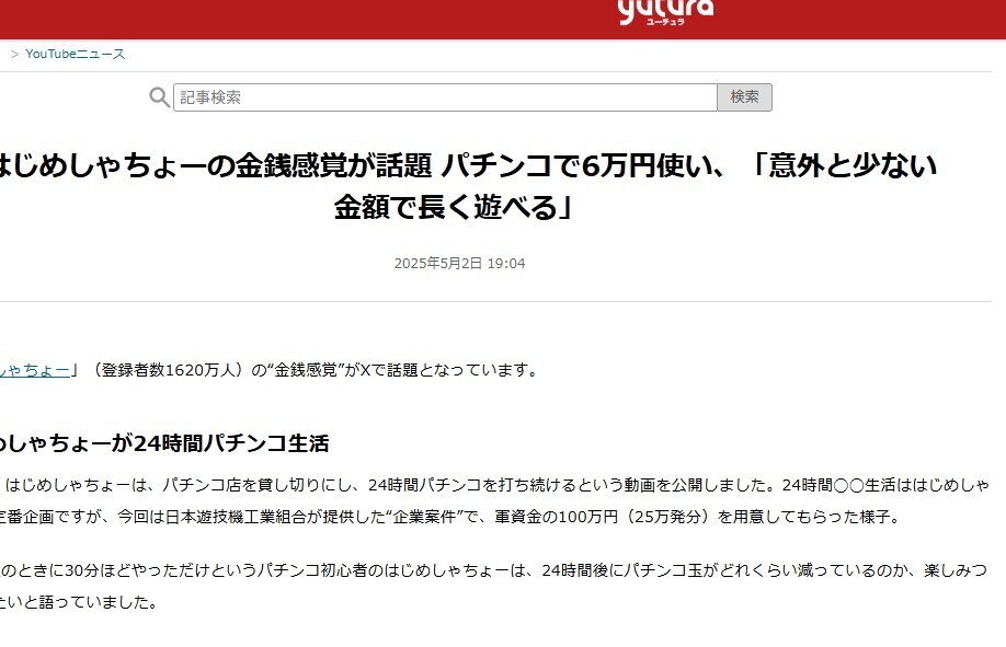 はじめしゃちょーの金銭感覚が話題 パチンコで6万円使い、「意外と少ない金額で長く遊べる」