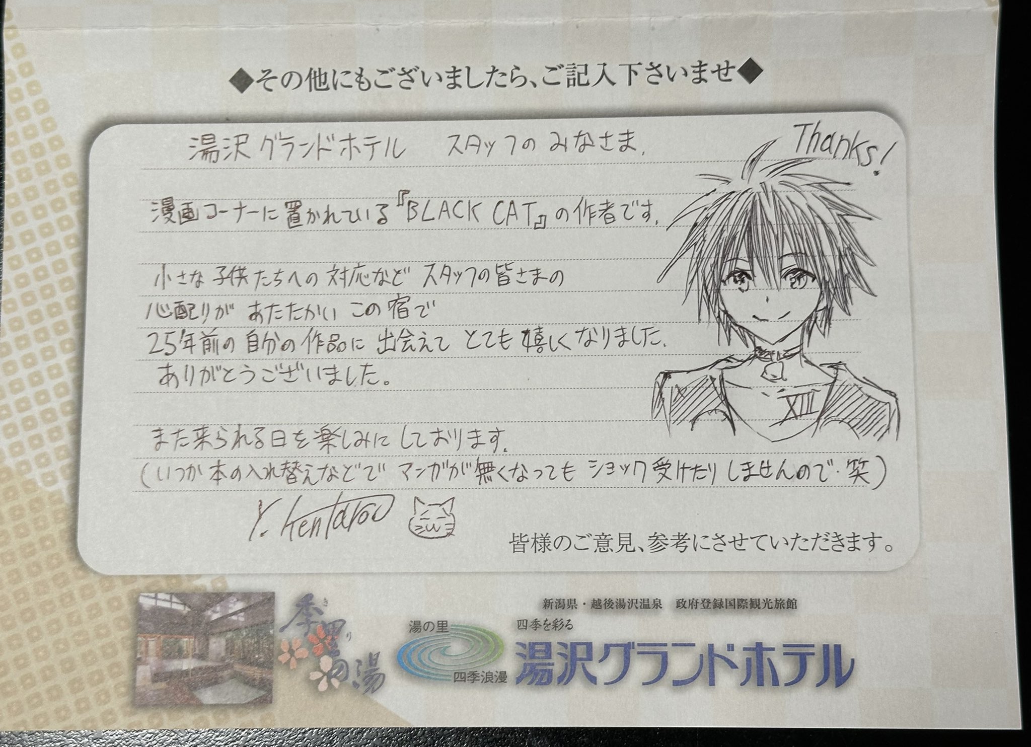 思わず感謝のメモを残してきました😊#湯沢グランドホテル #BLACKCAT pic.twitter.com/wpwVhZOtSZ