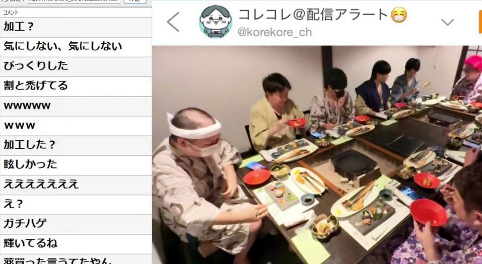 公開されたのは、メンバー全員での夕食中のスクリーンショットで、坊主頭に鉢巻姿のコレコレの頭頂部は、確かに禿げ上がっているように見えました。