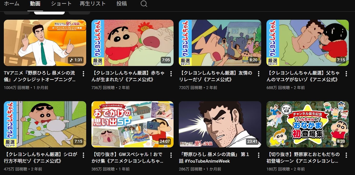 ・これがクレヨンしんちゃん公式チャンネルで一位を掻っ攫う事になるとは夢にも思わなかった