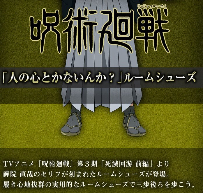 禪院直哉のセリフが刻まれたルームシューズが登場。