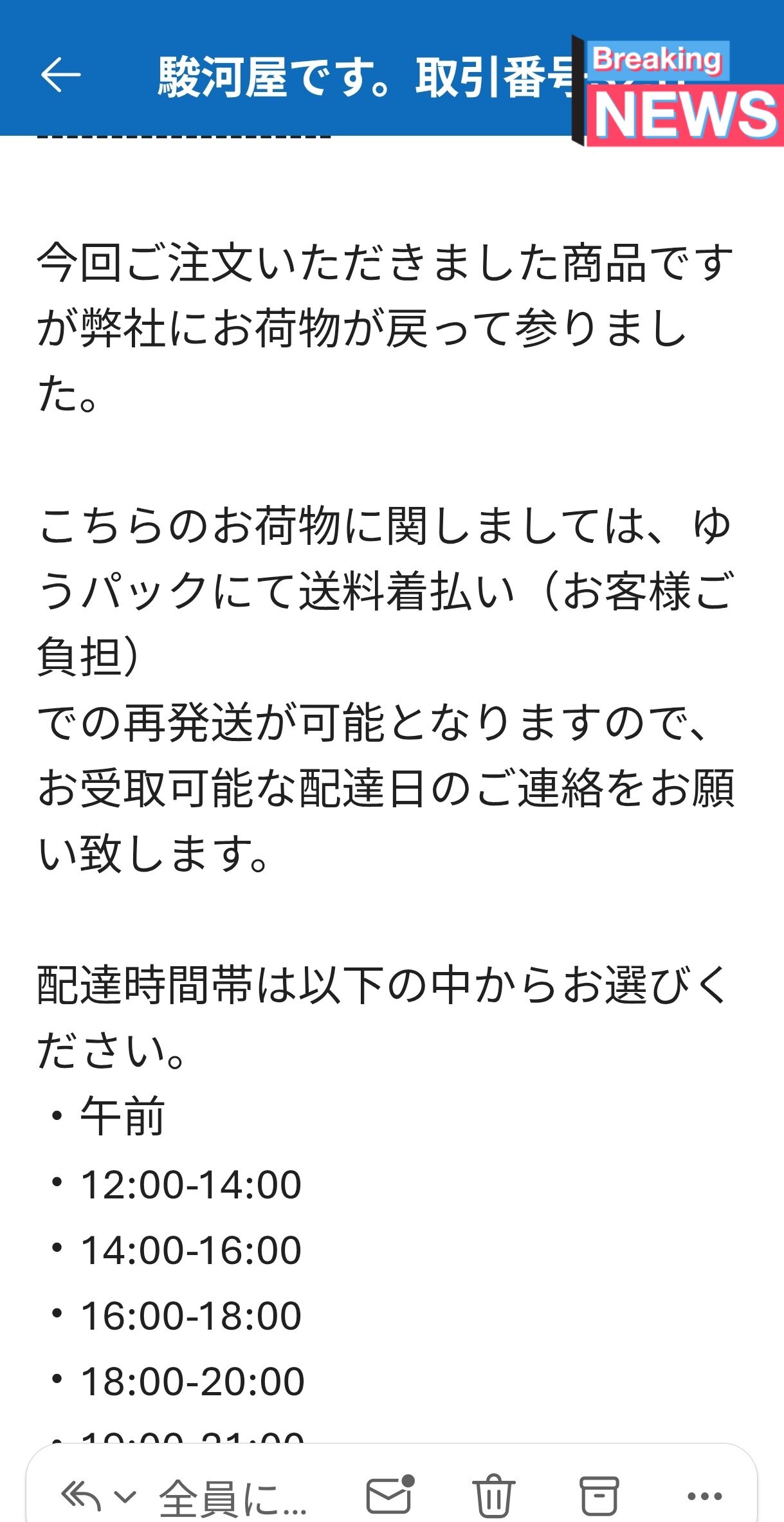駿河屋が住所誤発送したのに、送料は客が負担しろ、受け取り意思がないと破棄するぞと脅してきました。
