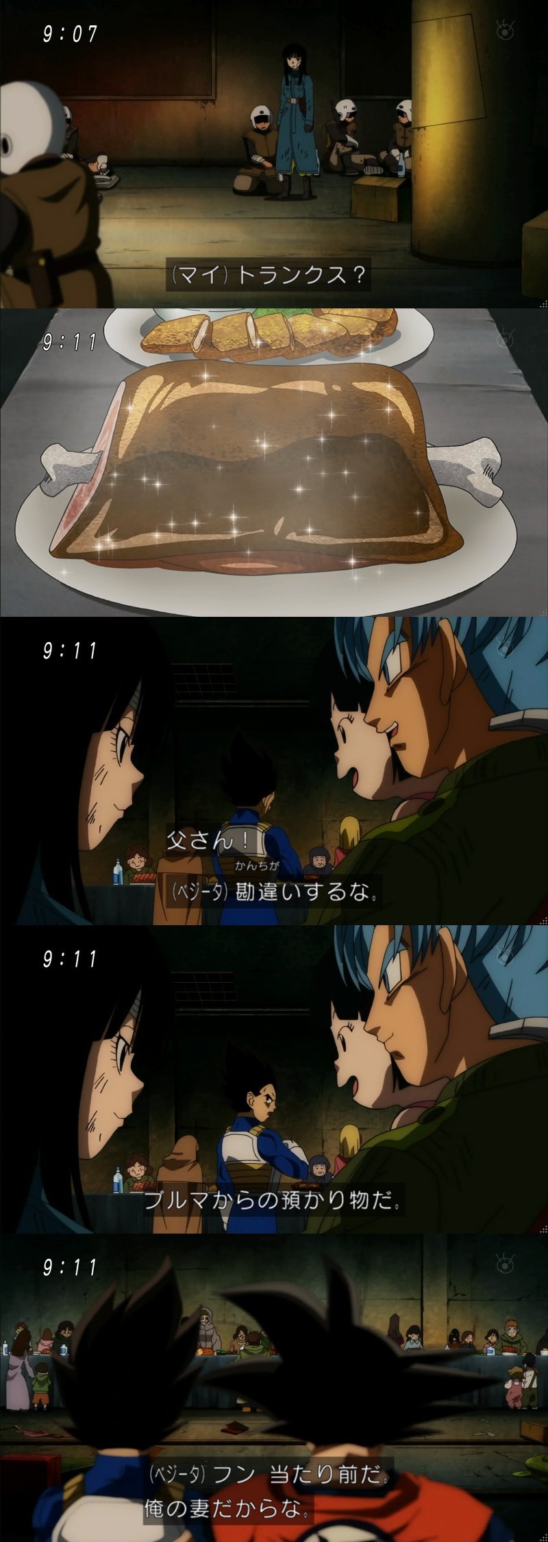 物資の乏しい未来世界のためにホイポイカプセルに御馳走詰めて参上するベジータ