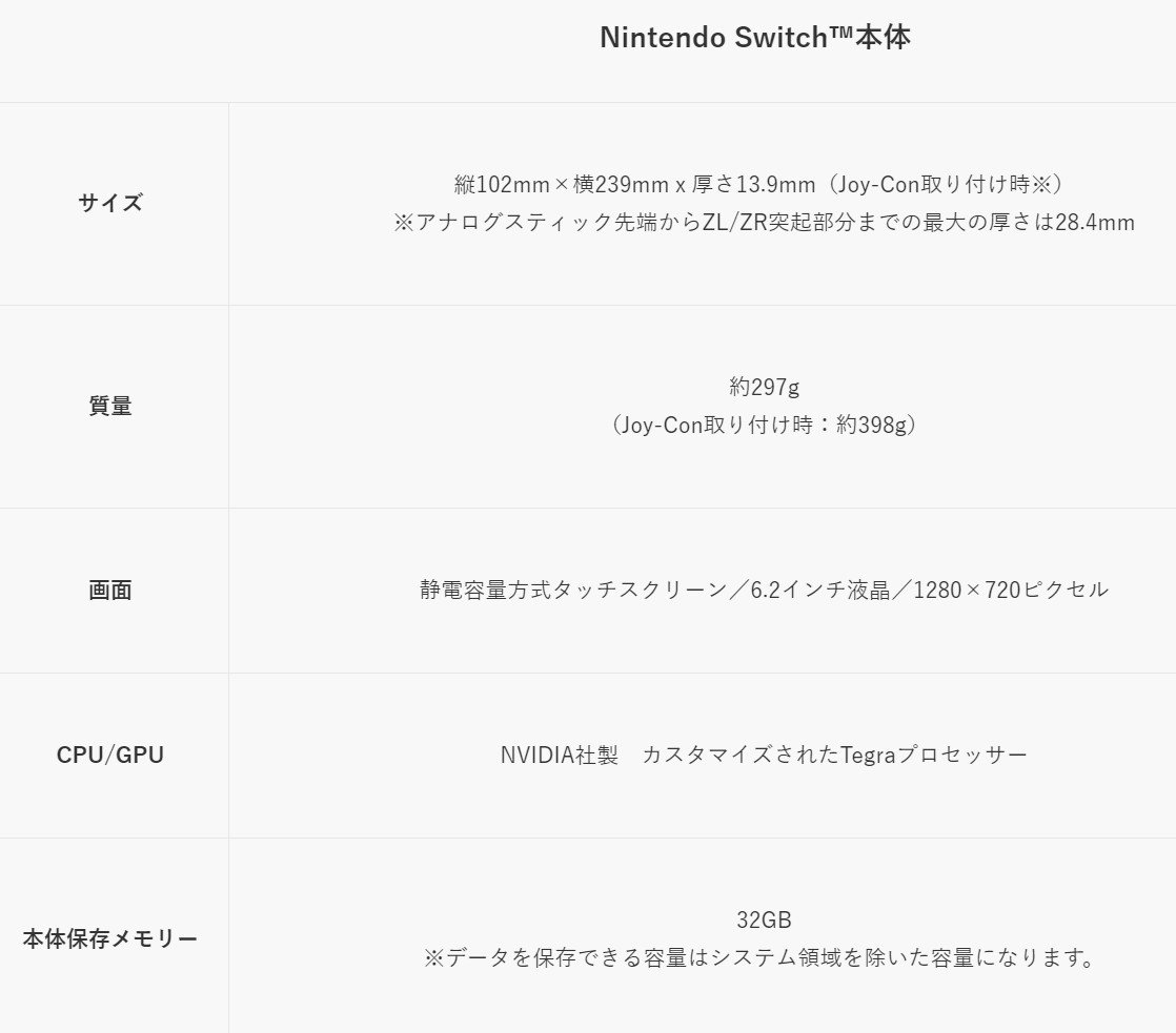 ニンテンドースイッチの機能・仕様が公開