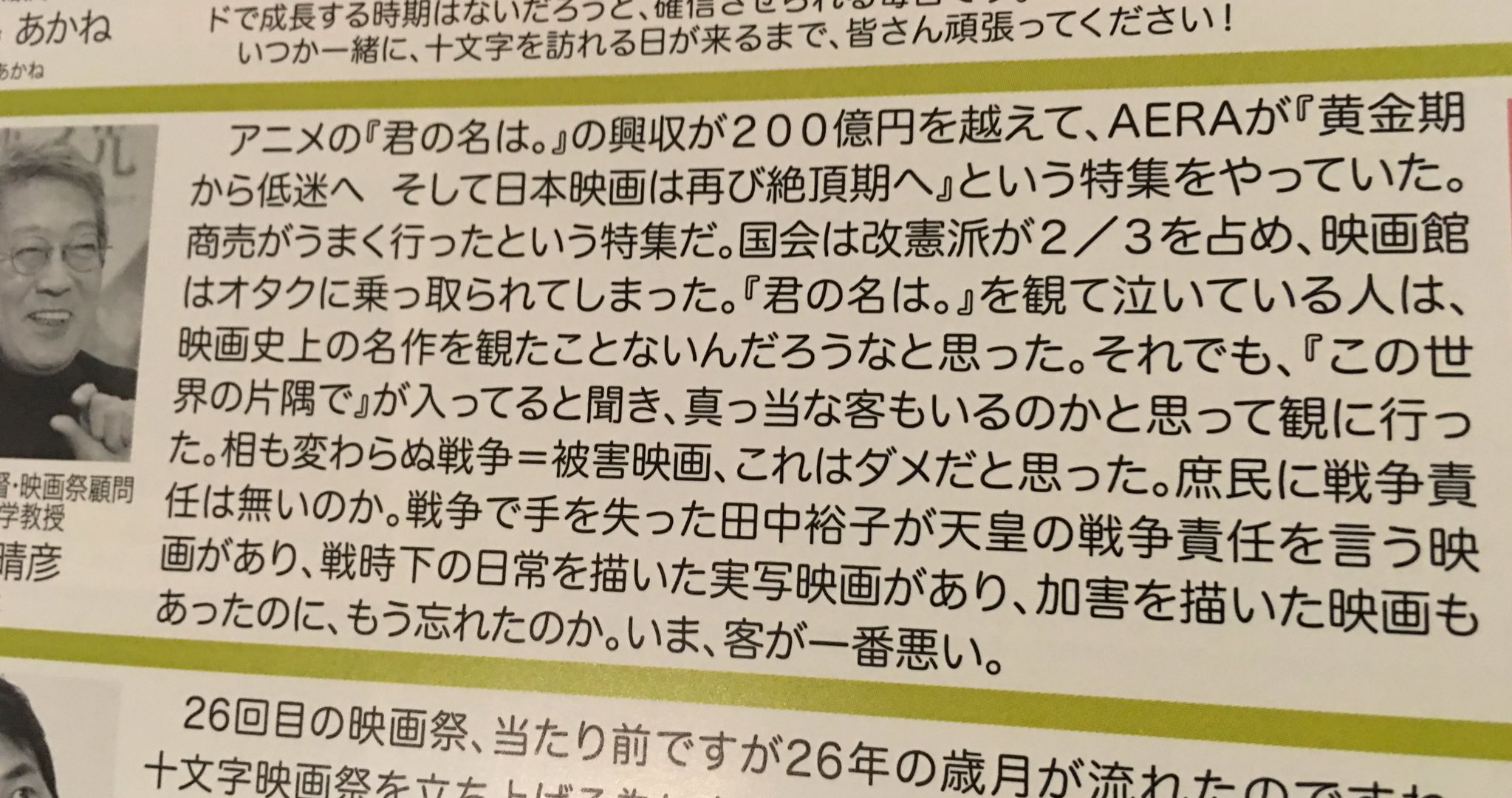 荒井晴彦氏が『君の名は。』『この世界の片隅に』や客を批判