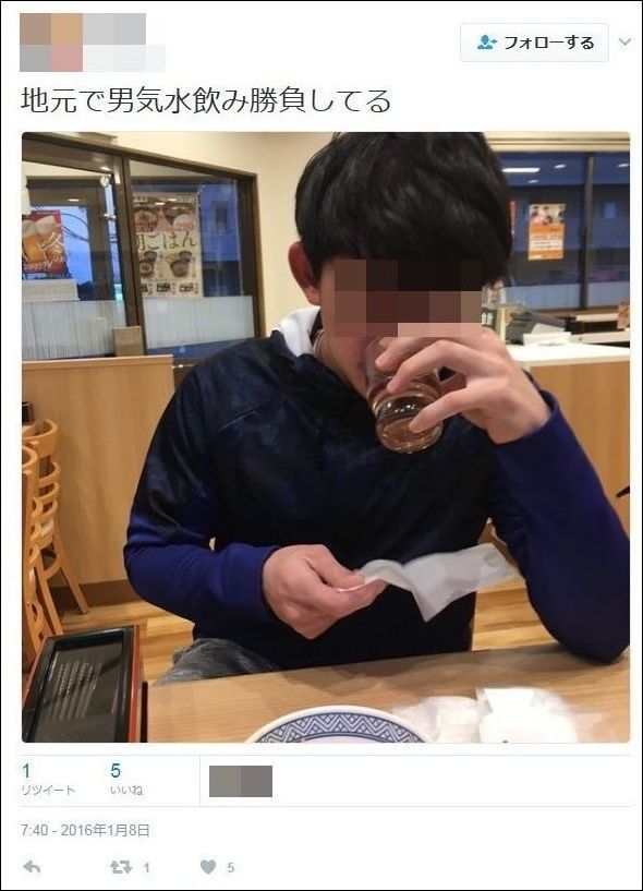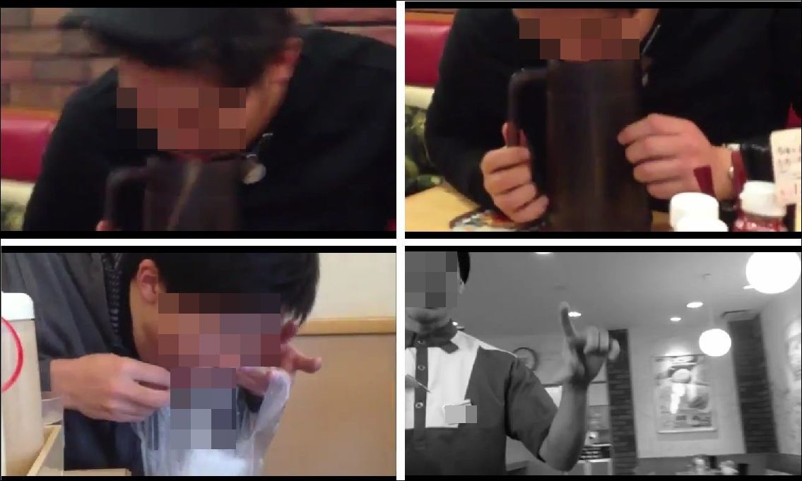 すき家で「男気水飲み勝負」、水差しにゲロを吐く不衛生行為を動画で自慢!