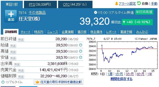 任天堂(株)【7974】:株式/株価 - Yahoo!ファイナンス