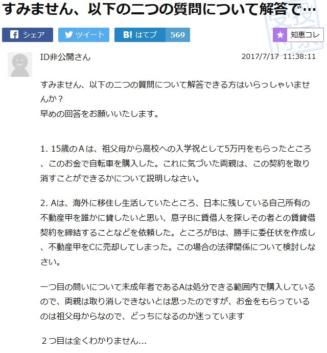 他学部ならともかく、法学部でこれわからないとか退学した方が良いレベルだからな