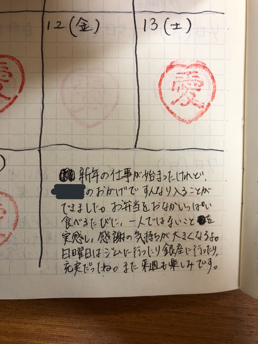 恥ずかしい話なのですが、私とても短気で。治したくて、スタンプノートをつくって、1日いちども怒らなかったら、夫にスタンプ押してもらってるのです。週の終わりに書いてくれるメッセージが愛が深く、とても優しい。生きようと思う。 pic.twitter.com/LLwDUzSDHU
