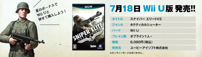 ユービーアイソフトは、Wii U版『スナイパー エリートV2』を7月18日に発売すると発表しました。