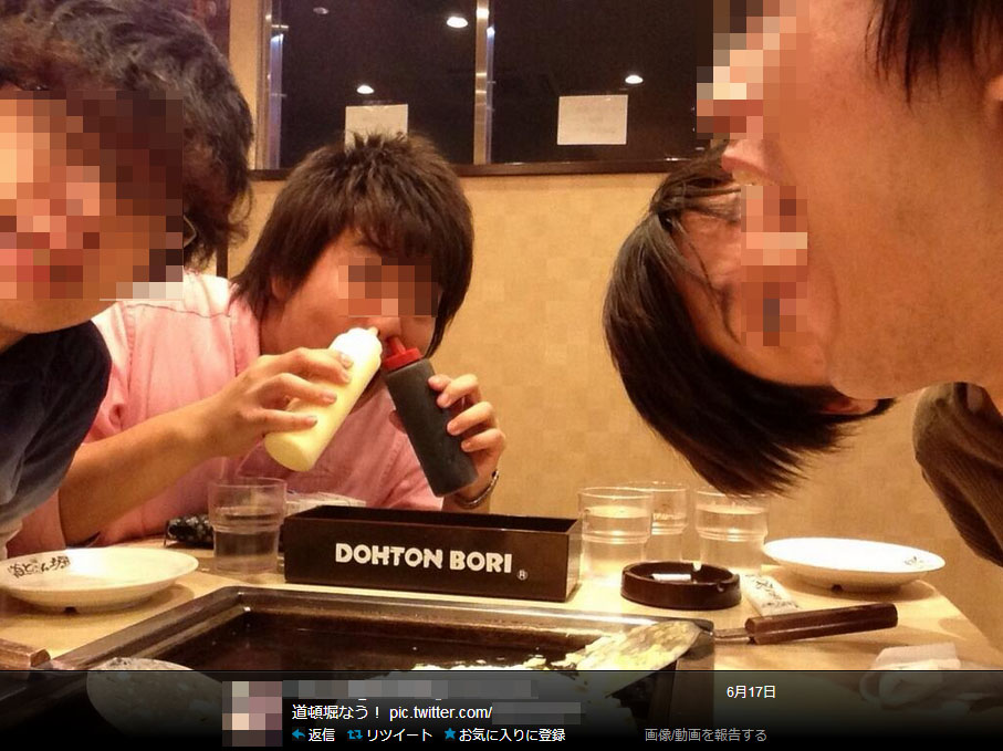 この件では店は被害者だけどソース容器の対応が洗浄で済ませるようだし、別件でこの糞デブ未成年なのに店は酒を提供してるっぽいよ