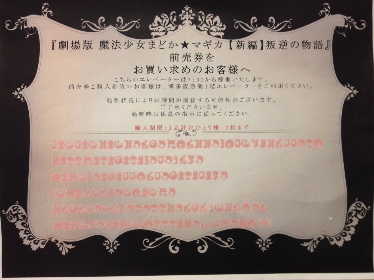 劇場版『魔法少女まどか☆マギカ』前売り券の案内チラシ