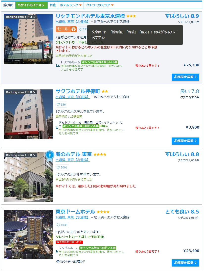3月31日~4月1日の水道橋駅周辺ホテル一覧より