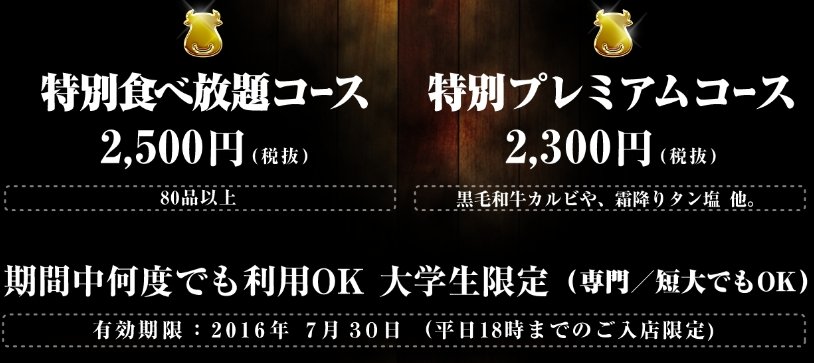 2500円(税抜)で80品以上食べ放題のコースもご用意(*゚д゚*)!!#牛角大学生割 pic.twitter.com/Ru6Y42opmg