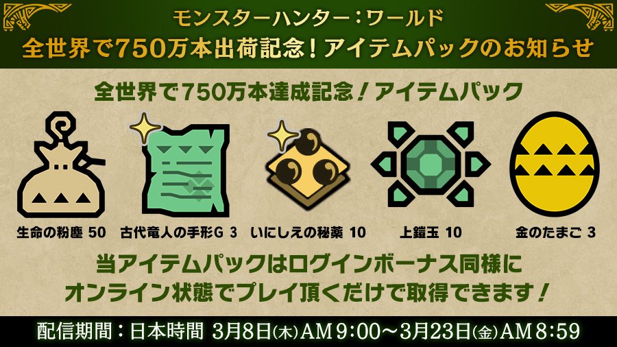 — モンスターハンター:ワールド公式 (@MH_official_JP) 2018年3月8日