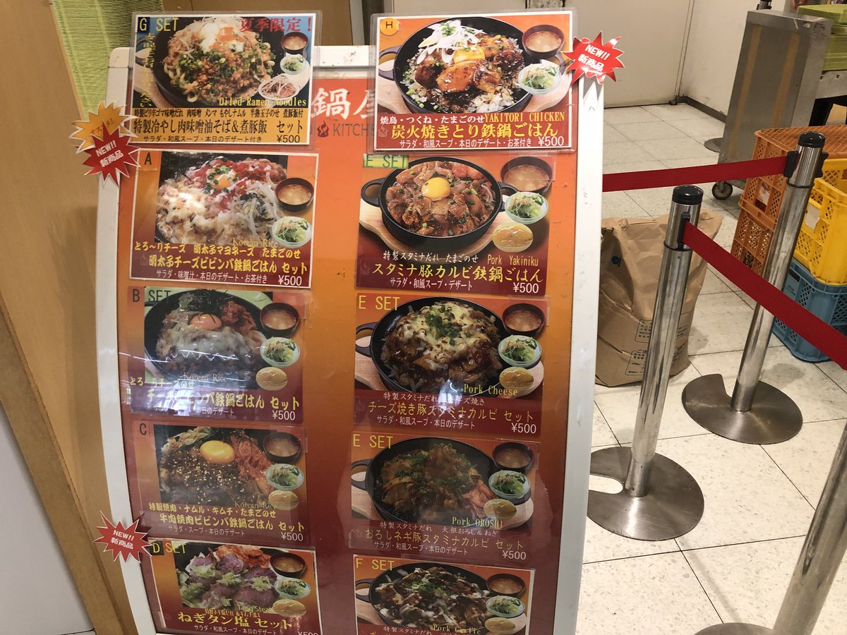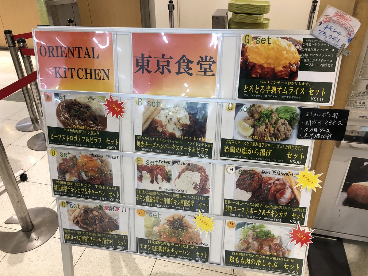 200〜500円の学食、400〜600円の学食、ここの500円統一の学食、〜1000円の学食、職員・教授向けのレストラン?