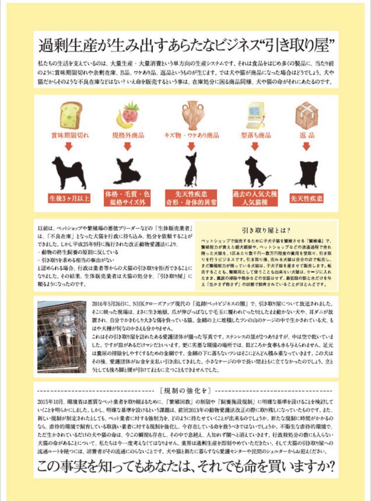 だからと言ってペットショップで命を買うことが許される理由にはなりません、、ペットショップで動物を買うことの何が悪いのか?という方、ご自身で少し調べてみて下さい😢黙っていられず失礼しました。。 pic.twitter.com/3NobibJvLN