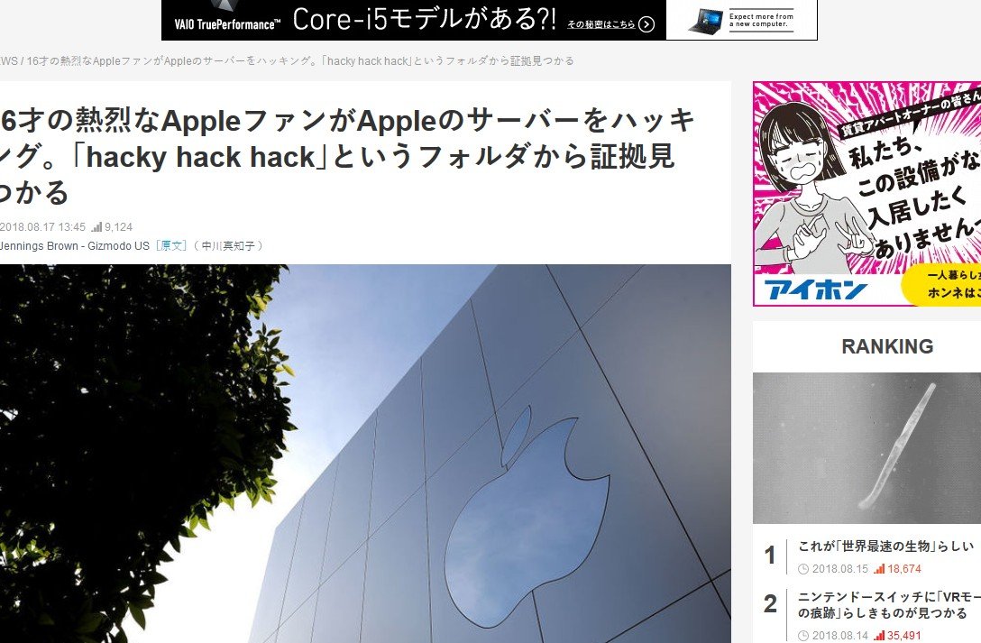 16才の熱烈なAppleファンがAppleのサーバーをハッキング。「hacky hack hack」というフォルダから証拠見つかる