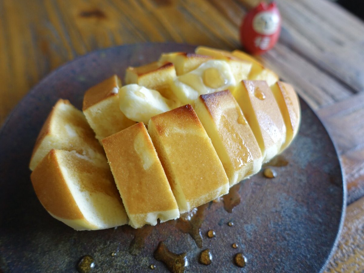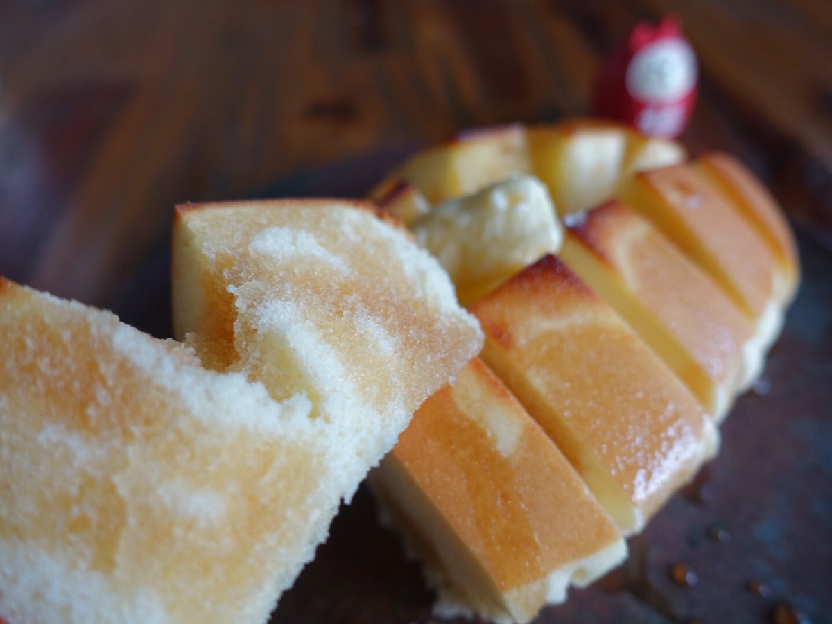 ヤマザキパンの北海道チーズ蒸しケーキに切れ目入れてトースターで焼いてバターとメープルシロップかけたやつ。罪深い…。ぜひやってみてください…。ほら秋だし。