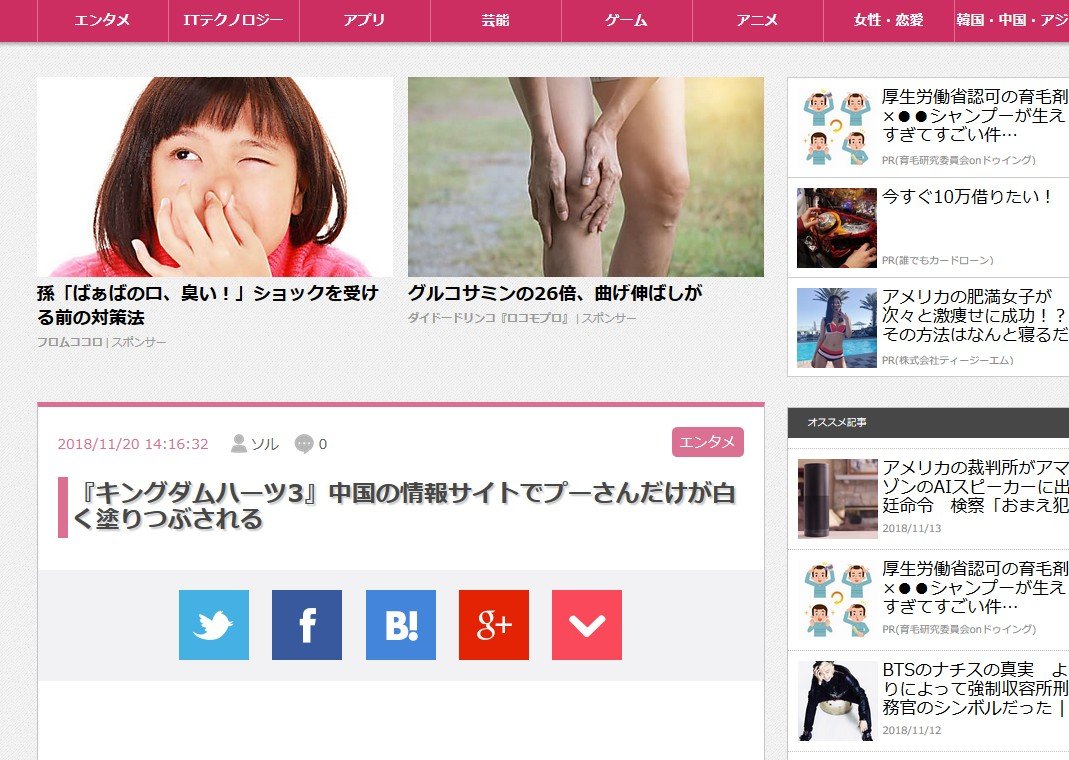 『キングダムハーツ3』中国の情報サイトでプーさんだけが白く塗りつぶされる