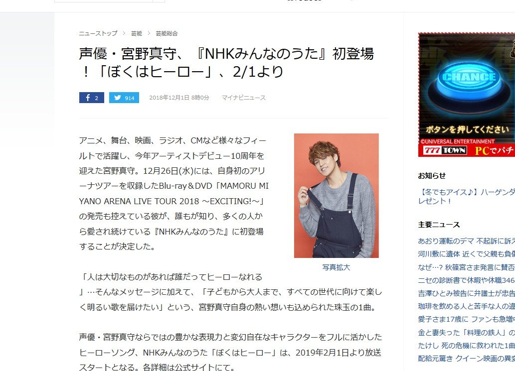 めざましテレビ週レギュラーといい宮野真守がどんどんメジャーな声優に