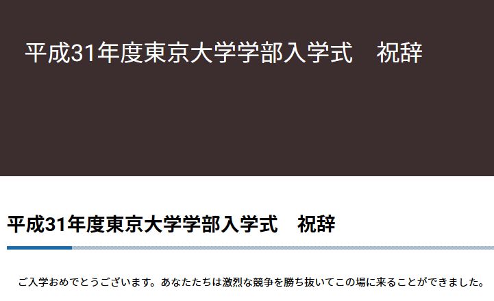 平成31年度東京大学学部入学式 祝辞 | 東京大学 https://t.co/BM8VJG0ulg