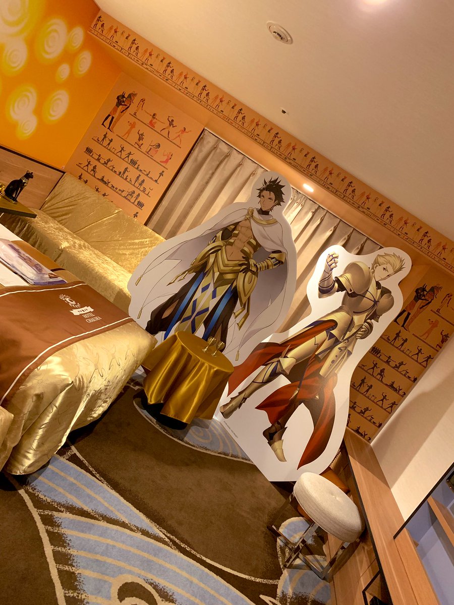 黄金の間✨ギル様とファラオがお出迎えして下さいました。眩い黄金の装飾に、連れていったインドぬいも感動している様子。私達も王達に興味津々。壁ではゲートオブバビロンごっこも出来ます! pic.twitter.com/EERSrMYul7