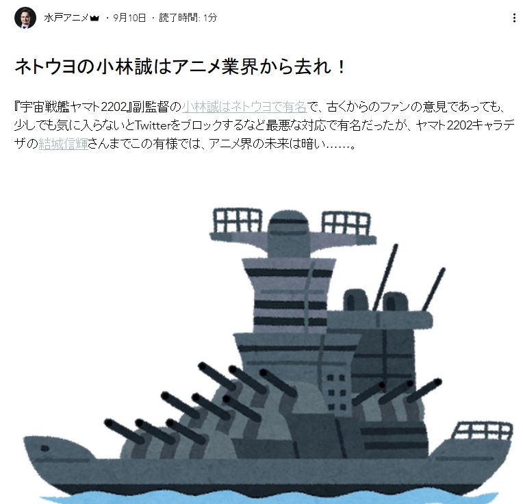 ネトウヨの小林誠はアニメ業界から去れ!