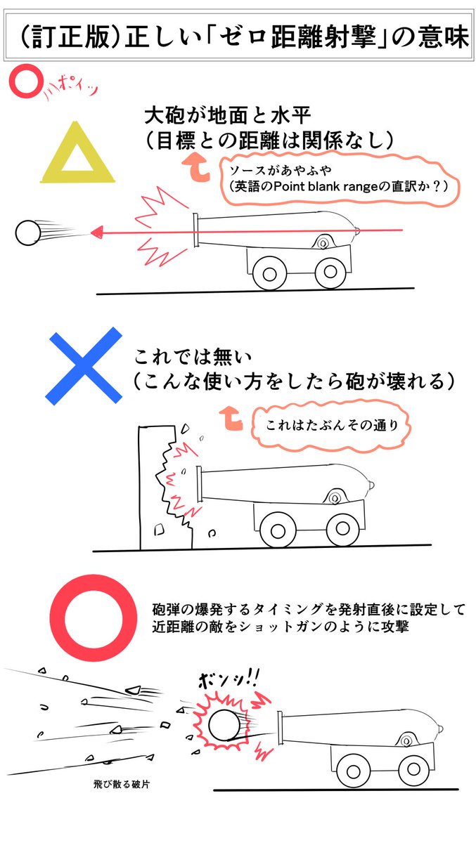 それよりただの水平撃ちをゼロ距離という理由がわからん、0角度だから水平と名付けてるんだろ?なんでまた勝手に再定義してんだか。