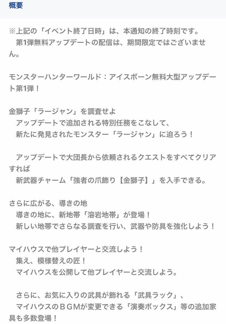 【お知らせ】10月10日(木)配信予定の無料大型アップデート第1弾で追加される「特別任務」は『モンスターハンターワールド:アイスボーン』エンディング後、マスターランク(MR)24以上の状態で、大団長に話しかけると受注できるようになります。https://t.co/jVikyOAtjz#MHWアイスボーン pic.twitter.com/14Erc6mJcg