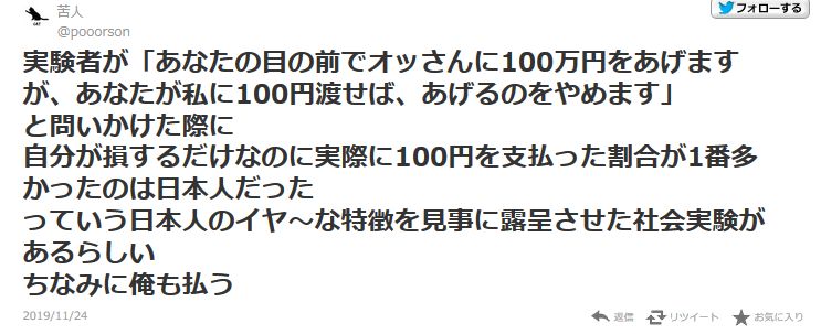 日本人のイヤ~な特徴を見事に露呈させた社会実験があるらしい