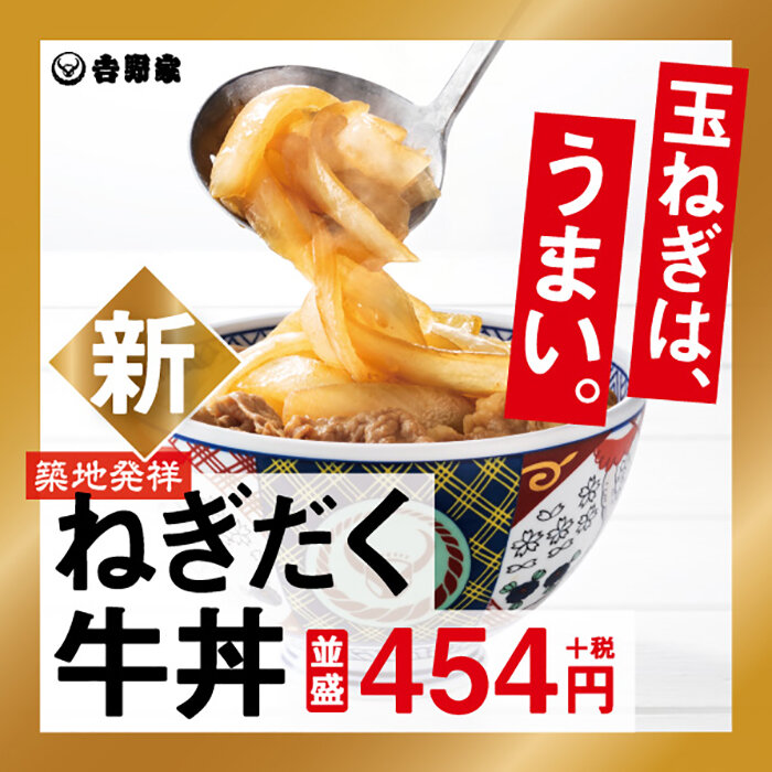 ねぎだく牛丼は、通常の牛丼と比べ牛肉の量は変えず、タマネギを増やす。「牛丼並盛」の場合ではタマネギの量は5倍になるという。サイズによっては丼に乗り切らない可能性もあるため、増量分のタマネギは別の器に入れて提供する。税抜き価格は通常の牛丼より102円高く、「ねぎだく牛丼並盛」では454円。サイズは「小盛」~「超特盛」の6種類で展開する。