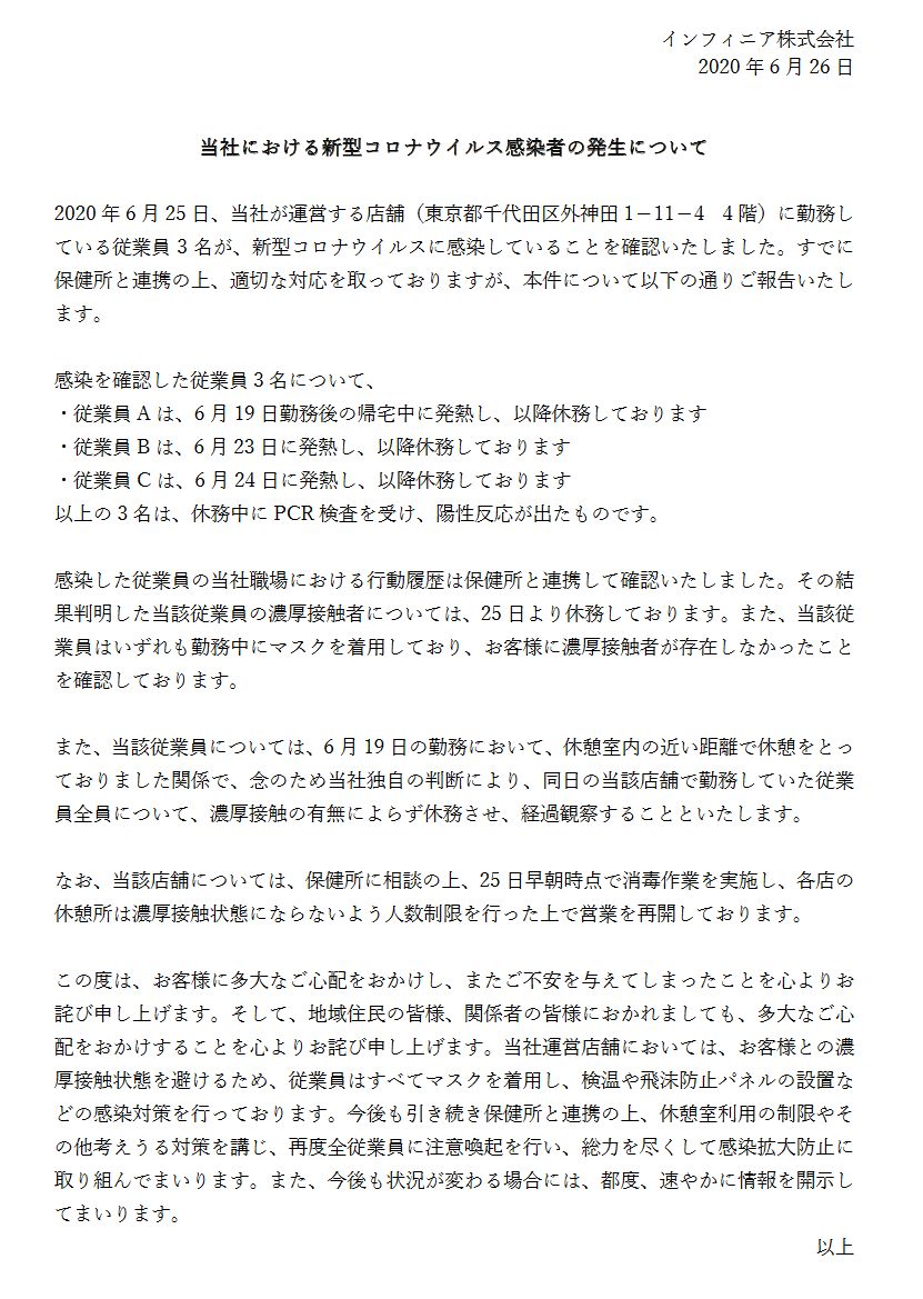 2020年6月25日、当社が運営する店舗(東京都千代田区外神田1−11−44階)に
