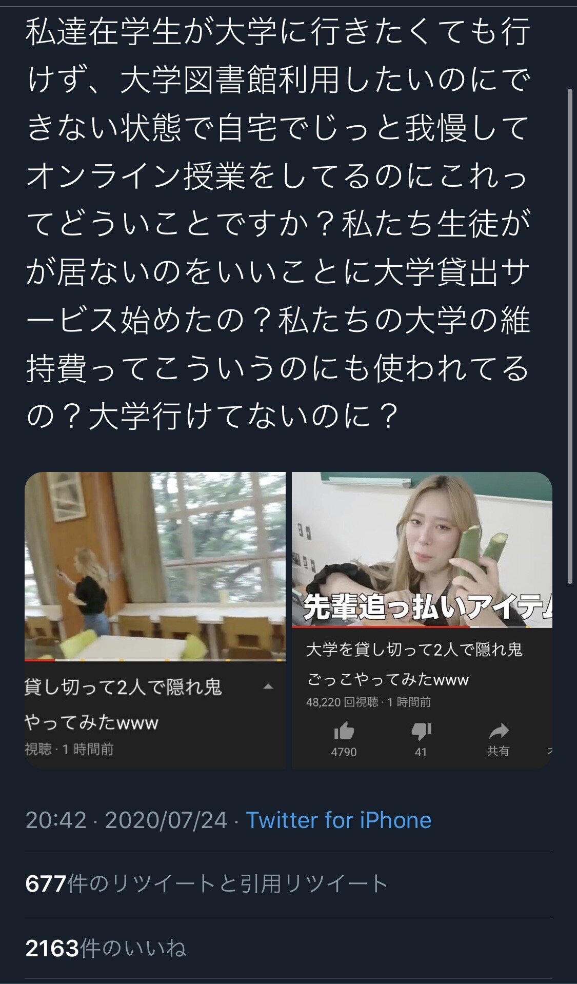 youtuberの彼らよりも、このようなことをしている大学側にとても憤りを覚えます