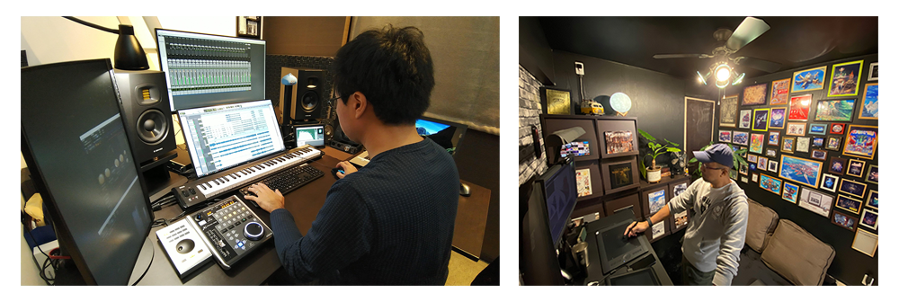 <在宅勤務中の一例(サウンド担当およびグラフィック担当)>