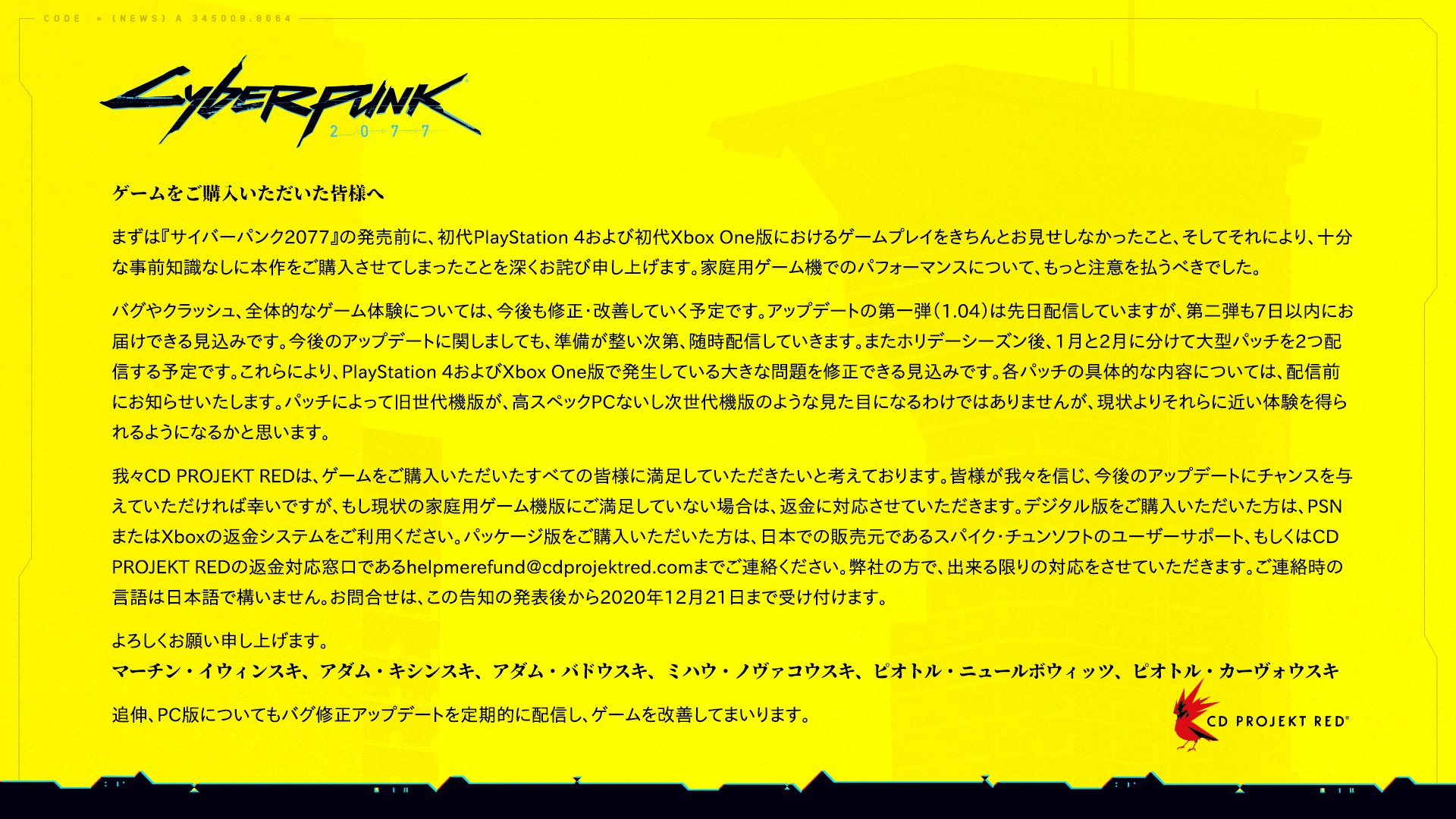 コンソール版の返金対応が国内でも正式発表!DLパケ版ともに受付対応、新たな修正パッチも近日配信予定