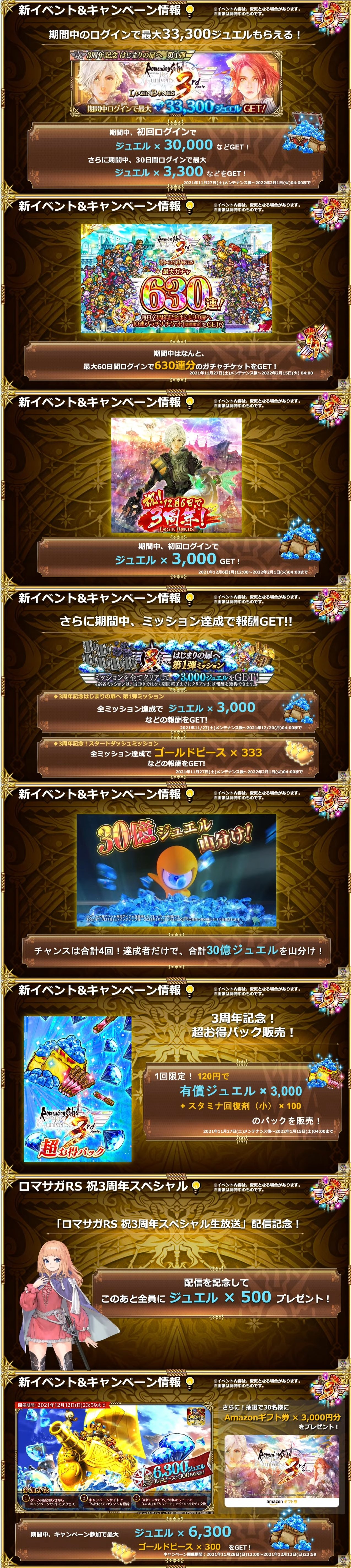 ロマサガrs3周年はガチで1天井分のジュエルが配られそうw